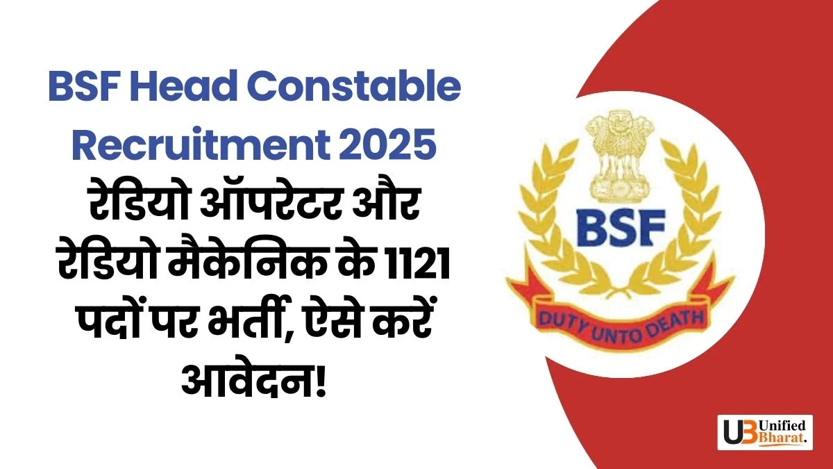 BSF Head Constable Recruitment 2025: रेडियो ऑपरेटर और रेडियो मैकेनिक के 1121 पदों पर भर्ती, ऐसे करें आवेदन!