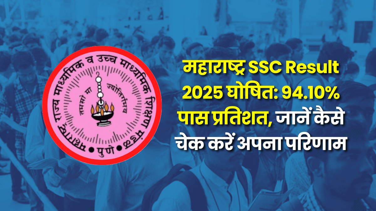 SSC Result 2025 महाराष्ट्र स्टेट बोर्ड ऑफ सेकेंडरी एंड हायर सेकेंडरी एजुकेशन (MSBSHSE) ने 13 मई 2025 को दोपहर 1 बजे कक्षा 10वीं (ssc result 2025) के नतीजे घोषित कर दिए हैं। इस साल कुल पास प्रतिशत 94.10% रहा, जो पिछले वर्ष के 95.81% से थोड़ा कम है।
