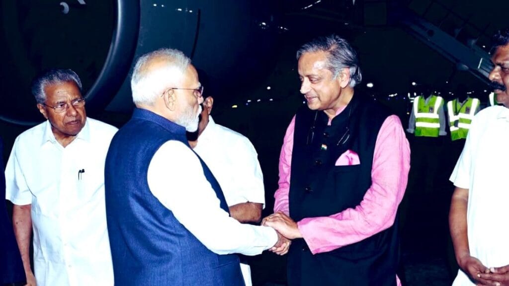 थरूर ने एक दिन पहले एक्स पर पीएम मोदी के साथ तस्वीरें साझा करते हुए लिखा था, “दिल्ली हवाई अड्डे की खराब स्थिति के बावजूद, मैं अपने निर्वाचन क्षेत्र में प्रधानमंत्री नरेंद्र मोदी का स्वागत करने के लिए समय पर तिरुवनंतपुरम पहुंच गया।” थरूर ने विज्ञानम बंदरगाह परियोजना का समर्थन किया है, लेकिन पहले इसकी प्रगति पर सवाल भी उठाए थे।